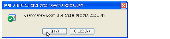 | ¾Æ·¡¿Í °°Àº âÀÌ ¶ß¸é [¿¹]¸¦ ¼±ÅÃÇÏ¿© ÆË¾÷À» Çã¿ëÇÕ´Ï´Ù |