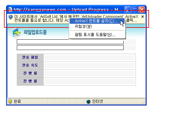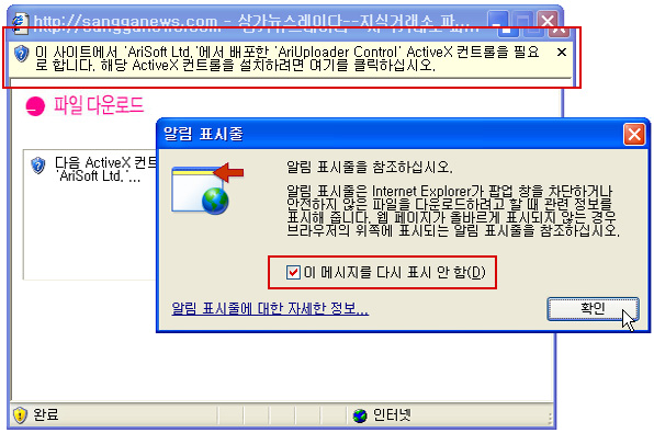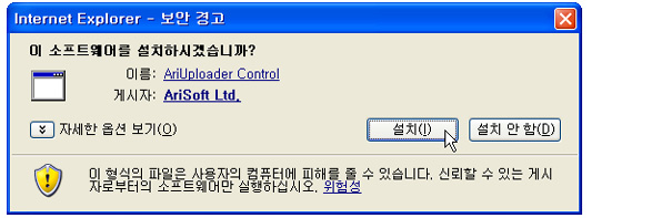 | ActiveX ÄÁÆ®·Ñ ¼³Ä¡ È®ÀÎ ¸Þ½ÃÁö°¡ ³ª¿À¸é [¼³Ä¡]¸¦ Ŭ¸¯ÇÕ´Ï´Ù |