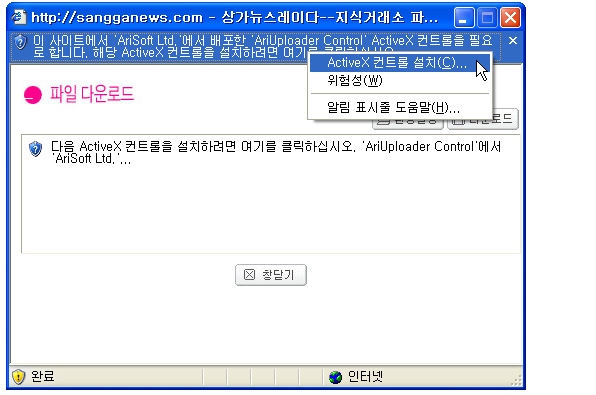 | 2. Áö½Ä°Å·¡¼Ò ´Ù¿î·Îµå½Ã ActiveX ¼³Ä¡ ¹æ¹ý |