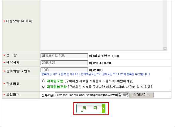 | Áö½Ä°Å·¡ µî·ÏÆûÀ» ÀÛ¼ºÇϽŠÈÄ , [ÀÇ·Ú] ¹öưÀ» Ŭ¸¯ÇÕ´Ï´Ù. |